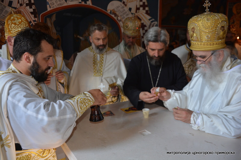 У литургијској бесједи након читања Јеванђеља Митрополит црногорско-приморски је рекао да овим освећењем обиљежавамо 800. годишњицу оснивања самосталне Цркве Жичке архиепископије – Пећке патријаршије.