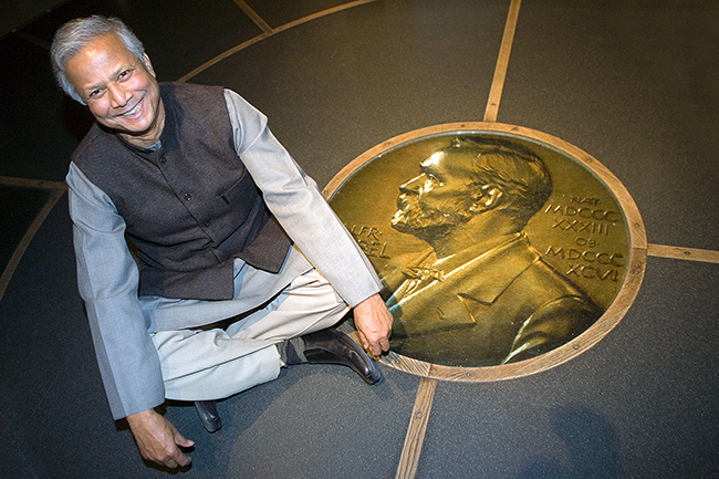 Јунус је 2006. добио Нобела за допринос „економском и социјалном развоју одоздо“.