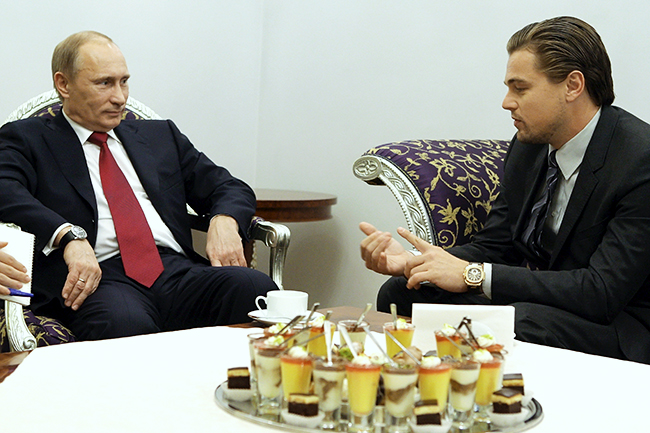 Дикаприо је истом листу открио да се пре неколико година у Санкт Петербургу сретао са председником Руске Федерације. Нагласио је да је то било на скупу посвећеном спасавању сибирских тигрова.