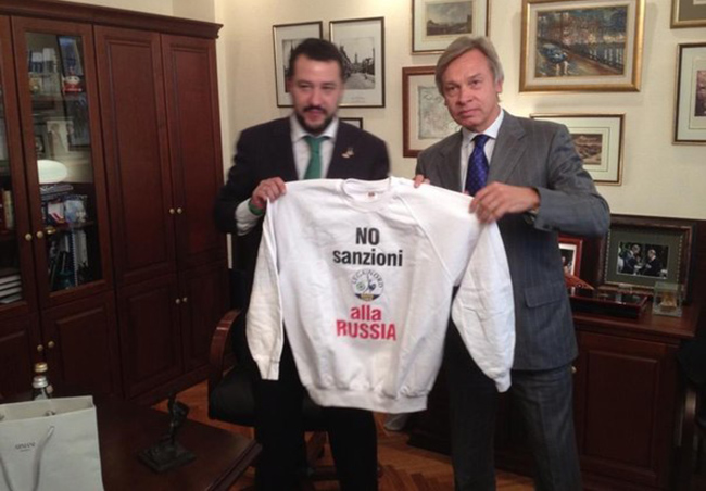 ЛИДЕР италијанске опозиционе партије Лига Севера – Матео Салвини који је европосланик и један од најпопуларнијих политичара у својој земљи – појавио се на пленарном заседању Европског парламента у Стразбуру у мајици са портретом Владимира Путина.