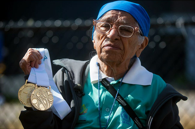 У Ванкуверу је учествовала у трци на 100 метара за стогодишњаке и старије. И: освојила злато.