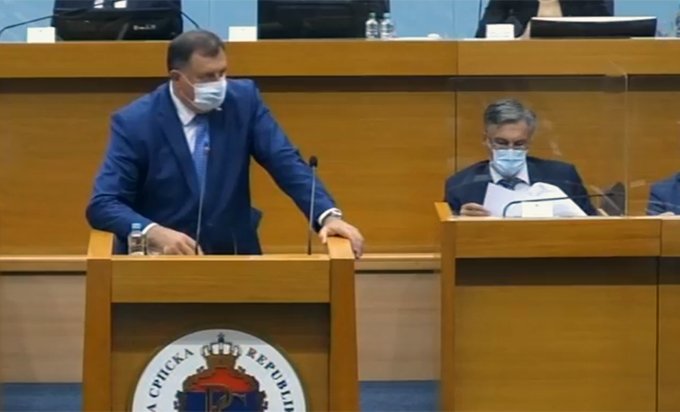 Додик је рекао да је на сва три питања за која је тражио подршку Народне скупштине Републике Српске угрожен интерес Републике Српске, имајући у виду да се задире у уставно-правни поредак и покушава дислоцирати одговорност везано за поједина питања.