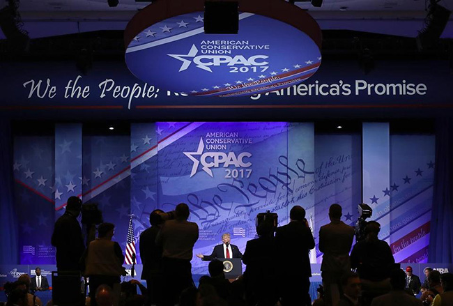 На самој конференцији је – са својим најдужим говором откако је шеф државе – наступио Доналда Трамп који је – грљењем националне заставе и својеврсним плесом са њом – изазвао одушевљење присутне публике.