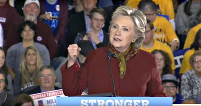 * Плод СТРАХА да може победити, или не признати резултате избора, онај који води своје присталице против Вашингтонског блата и корупције: "Он (Трамп) угрожава резултате наше демократије. Ми у Сједињеним Државама видимо разлику између руковођења и диктатуре. Подржавали ви мене или мог опонента, ми заједно морамо показати да подржавамо америчку демократију"