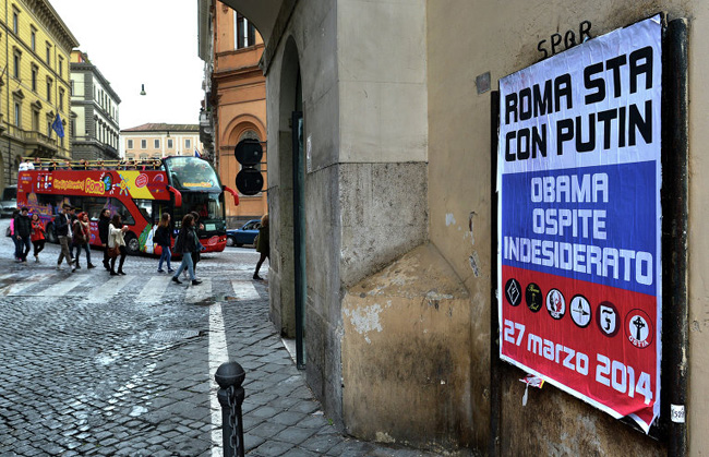 ПЛАКАТИ ПО РИМУ: „Ми смо заједно са Путином, Обама је – нежељени гост”