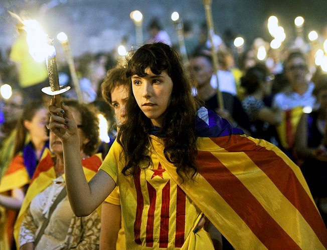 Протест су организовали каталонски сепаратисти поводом националног дана Каталоније који се зове Диада - на тај дан 1714. године су снаге шпанског краља Фелипеа V коначно поразиле каталонску војску.