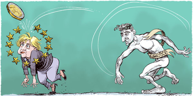 За њега су невероватне тврдње да грчки излазак може довести до колапса евра, јер је Грчка мала земља и не постоји ни један разлог зашто би њени поступци имали тако далекосежне последице на заједничку валуту, сем да би Грчка могла да постави преседан за остатак Европе, што представља страх Немачке.