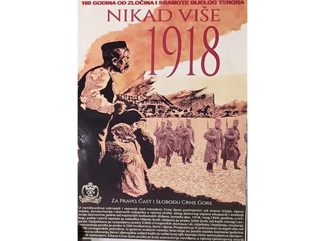 * На плакатима је и овај пропратни текст: „У немилосрдној одмазди и репресији над народом Црне Горе почињеним од стране Србије, њене војске, жандармерије и домаћих издајника у њеној служби, због активног отпора окупацији и анексији своје домовине, једне од најстаријих балканских држава, између децембра 1918. и августа 1929. године, у вртлогу пакла и смрти нестало је неколико хиљада људи”