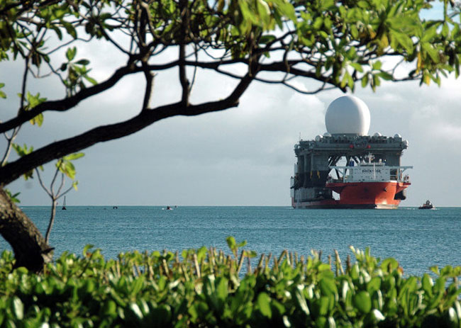 АМЕРИКАНЦИ су полупотопљену нафтну платформу претворили у самоходну радарску базу базы Sea Based X-Band Radar.
