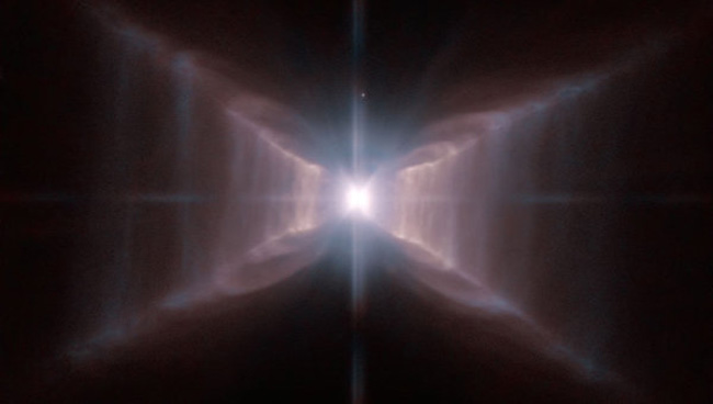 Сада астрофизичари верују да црвено зрачење потиче од нама непознатих својства прашине која чини „правоугаонике” унутар маглине. У њој се прелама светлост белог патуљка – једне од две упарене звезде.