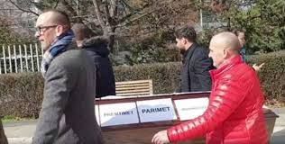 ЊЕГОВИ ГА ПОСТАВИЛИ ИСПРЕД ПАРЛАМЕНТА – КАО СИМБОЛ „САХРАЊЕНИХ ОБЕЋАЊА“