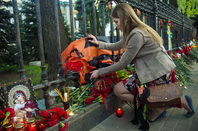 „ОКО зграде амбасаде било је много људи. Жене, деца, млади, дошли су и Украјинци. Полажу цвеће и пале свеће. Жалост!“ - рекао је члан Друштвене палате РФ Георгије Фјодоров који је присуствовао полагању цвећа пред амбасадом Украјине у Москви у знак жалости због погинулих у Одеси.