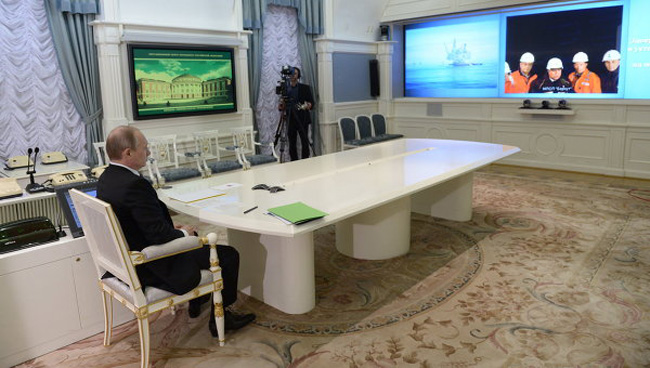 Сагласност руководству компанија – која је била замена за класично пресецање врпце - дао је преко видео линка председник Русије Владимир Путин, који је успоставио везу са платформом из кремаљског „ситуационог центра”.