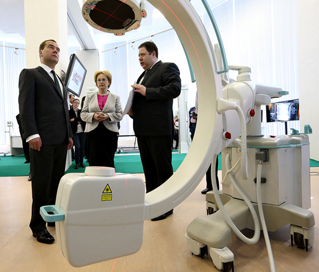 „Наша медицинска индустрија је стала на ноге. Данашња и ситуацију коју смо имали пре 10-15 се разликују као небо и земља“ – указао је Медведев.