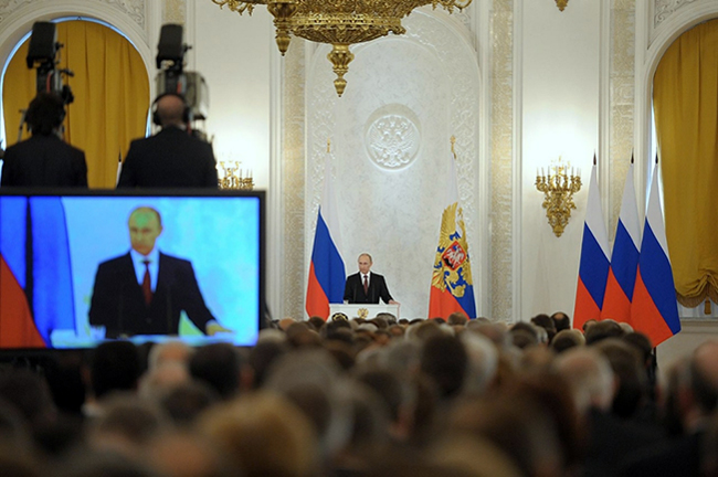 У пролеће 2014. у руској политици десио се тектонски помак. Ради се о обраћању председника Владимира Путина у Георгијевској сали Кремља поводом враћања Крима и Севастопоља у састав Русије. У том говору председник Путин, који је распад СССР-а раније назвао „највећом геополитичком катастрофом XX века“, први пут је јавно признао одговорност Руске Федерације за распад Совјетског Савеза.