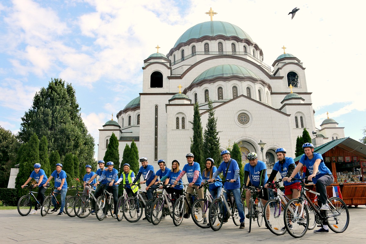 Вожњом од храма Светог Саве до Народне скупштине Републике Србије, чланови СНП су желели да упуте апел грађанима да уместо моторних возила, што више возе бицикл.