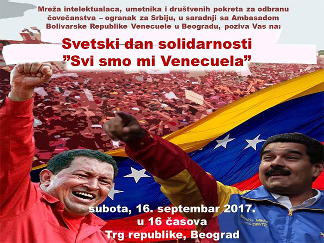 МИТИНГ солидарности са Венецуелом – у оквиру Светског дана солидарности са том карипском земљом – одржаће се 16. септембра у Београду.