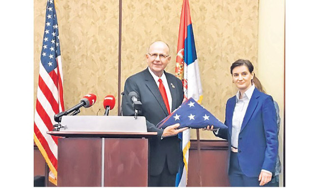 ОДНОСИ између Србије и САД пре сто година били су на врхунцу, а верујем да заједничким радом поново можемо стићи до истих висина, поручила је вечерас премијерка Србије Ана Брнабић на свечаности у америчком Конгресу поводом 100. годишњице откако се изнад Беле куће завијорила српска застава у знак пијетета за српски допринос и жртве у Првом светском рату.