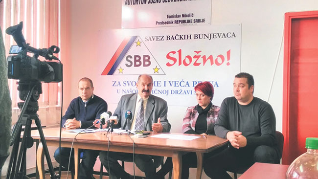 „Скупштина Војводине до сада тај закључак нити је разматрала, нити одбацила и Савез бачких Буњеваца, као политичка партија, сада жели ову иницијативу да истакне на политичком плану“, рекао је Мирко Бајић, председник СББ-а на конференцији за медије.