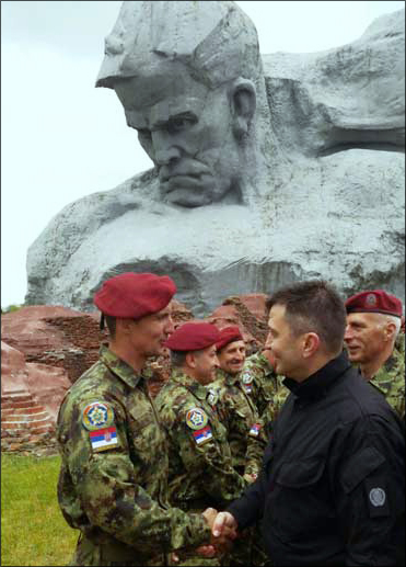 Током боравка у Белорусији, министар одбране посетио је Меморијални комплекс „Брестска тврђава - херој“ и положио венац на Споменик страдалим заштитницима Брестске тврђаве уз почасни строј припадника Специјалне бригаде.