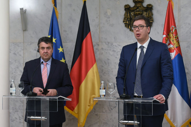 Габријел је на конференцији за новинаре с председником Александром Вучићем рекао да се Немачка радује успешном развоју Србије током времена док је Вучић био премијер и председник, али да треба наставити да се ради на реформама што пре.
