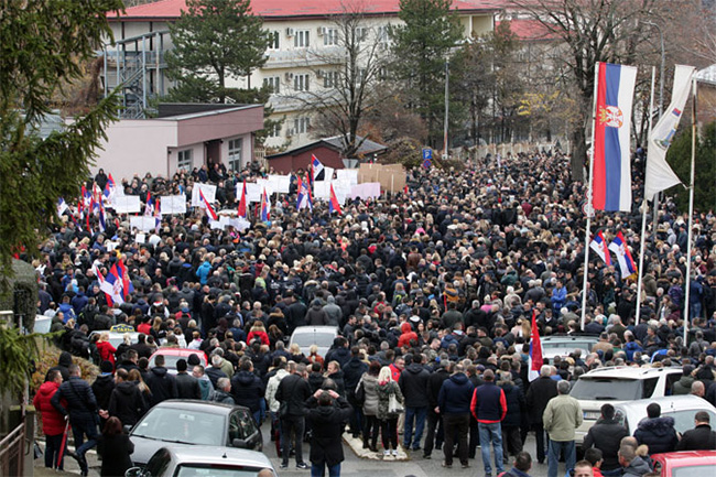 СРПСКИ ПРОТЕСТ У МИТРОВИЦИ: УКИНИТЕ ТАКСЕ , ОСЛОБОДИТЕ ПОХАПШЕНЕ ПОСЛЕДЊИХ ДАНА