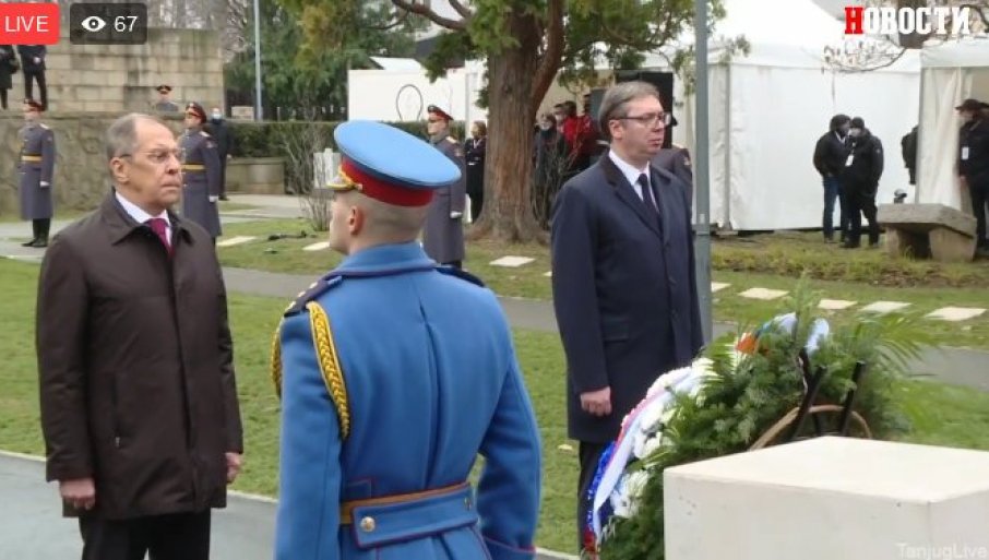 Претходно су Вучић и Лавров, на улазу у Гробље ослободилаца обишли изложбу Руског министарства одбране поводом победе над фашизмом у Другом светском рату.