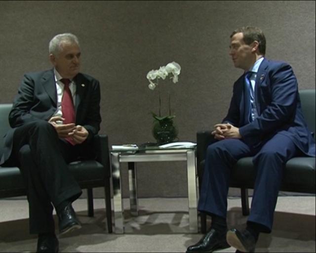 ПРЕДСЕДНИК Србије Томислав Николић састао се у Рио де Жанеиру са премијером Русије Дмитријем Медведевим. Средишња тема разговора било је: унапређење економских односа две земље.