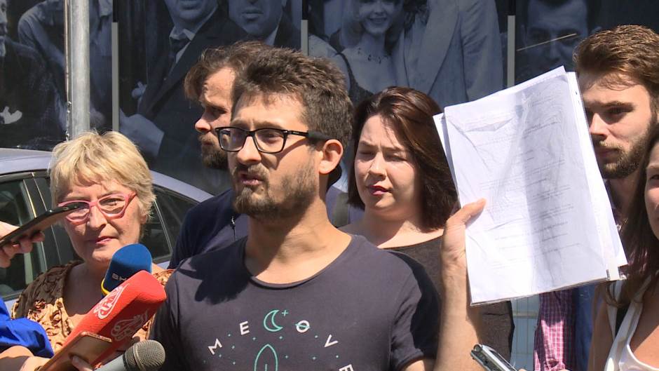Валентина Рековић, из Један од пет милиона, показујући на зграду Ректората која је код места где се одржава протест, позвала је на "минут ћутања умрлој истини".