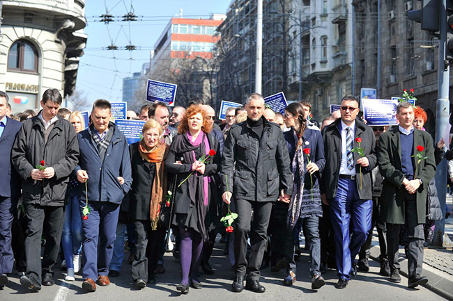 Они су предводили традиционалну "Шетњу за Зорана" коју ЛДП организује на дан Ђинђићевог убиства од свог седишта у центру Београда до Новог гробља, где је Ђинђић сахрањен.