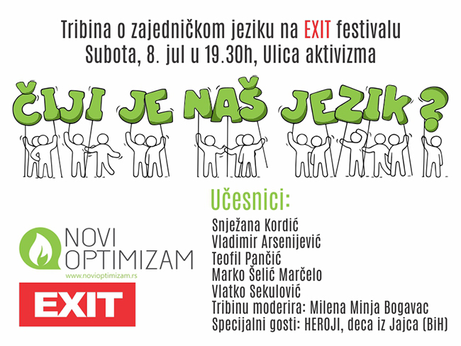 ДЕКЛАРАЦИЈА о заједничком језику ставља тачку на насилно националистичко распарчавање једног заједничког језика, којим говоре грађани Србије, Хрватске Босне и Херцеговине, Црне Горе, и промовише здрав разум насупрот националистичком искривљавању стварности, оценили су учесници трибине “Чији је наш језик?” на фестивалу Егзит (Еxит) у Новом Саду.