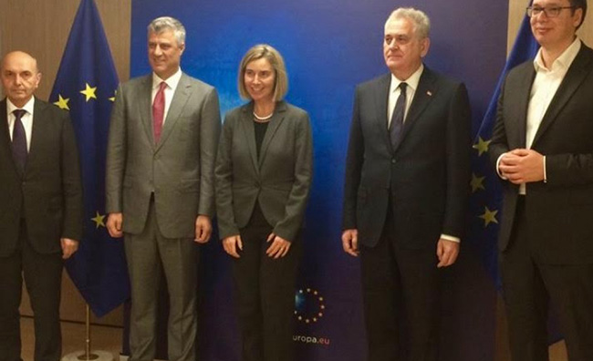 Александар Вучић и Томислав Николић разговарали су са Исом Мустафом и Хашимом Тачијем, у присуству високе представнице ЕУ на радној вечери у Бриселу која је трајала нешто више од два сата.
