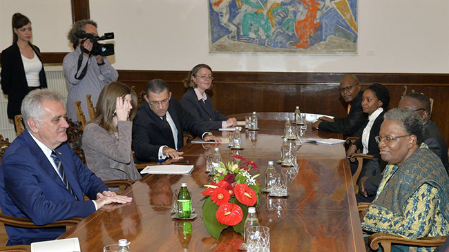 „Наша намера да будемо пуноправни члан ЕУ је искрена, али нас непрестано суочавају са условима да се та наша жеља оствари. Када бисмо нашим искреним пријатељима увели санкције, то нам не би донело нове пријатеље, већ бисмо, осим пријатељства, изгубили велику подршку у међународним односима“, рекао је Николић током састанка са потпредседницом Владе Намибије и министарком спољних послова Нетумбом Нанди Ндаитве.