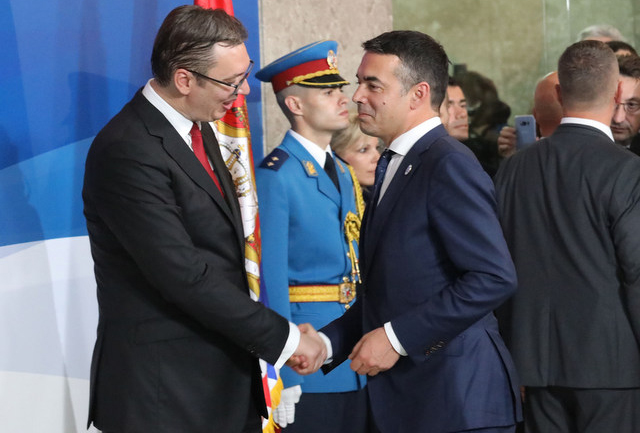 ПРЕДСЕДНИК Србије Александар Вучић и премијер Македоније Зоран Заев данас су се сагласили да две земље несугласице решавају искључиво дијалогом и да се заједнички боре за очување и унапређење пријатељских односа српског и македонског народа и грађана две државе.