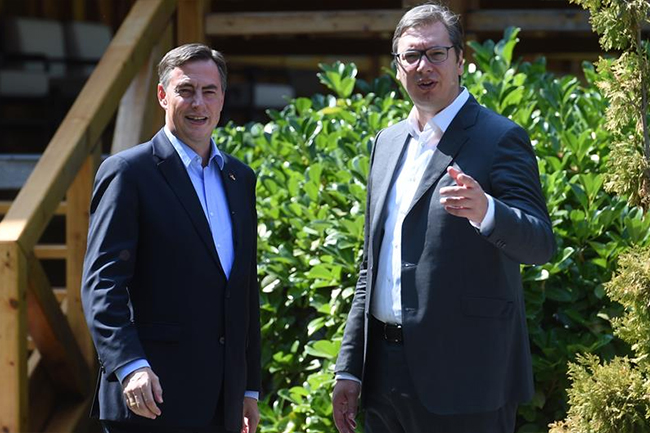 ПРЕДСЕДНИК Србије Александар Вучић и председавајући Комитета за спољне послове Европског парламента и известилац ЕП за Србију Дејвид Мекалистер разговарали су данас у Београду о европском путу Србије, унутрашњем дијалогу о Косову и напретку разговора с Приштином.