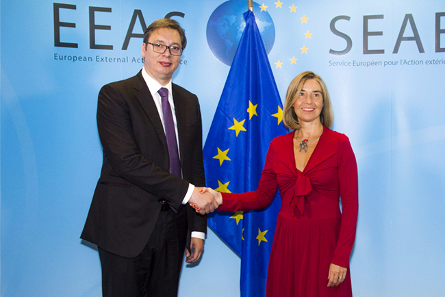 Он је рекао да су у сусрету с високом представницом Могерини кратко размотрене и прилике у Босни и Херцеговини и подвукао да ће се Србија „одговорно, озбиљно понашати“, да зна своју улогу и подржава „интегритет Босне и Херцеговине, наравно и Републике Српске у оквиру БиХ“.