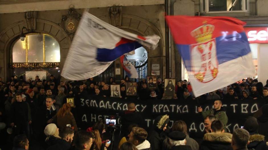 Протест испред амбасаде Црне Горе у Београду због насиља „Милових усташа“ над СПЦ