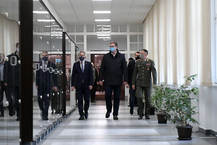 ВУЧИЋ СА МИНИСТРОМ ОДБРАНЕ И НАЧЕЛНИКОМ ГЕНЕРАЛШТАБА И ЊИХОВИМ КОЛЕГИЈУМИМА