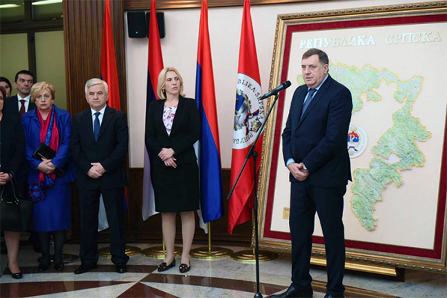 „Сви смо окупљени око идеје Републике Српске и још побеђујемо сами себе да прихватимо у пуном капацитету Републику као државу. Позивам све да тако то и третирате, јер то је први корак ка што већем осамостаљену Српске у оквиру Устава и Дејтонског мировног споразума”, рекао је Додик.