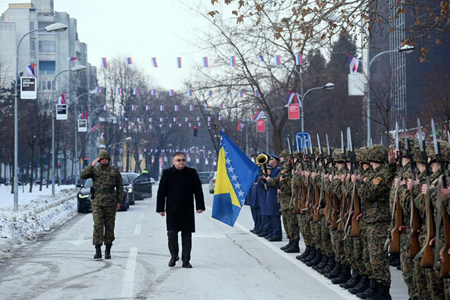 Реч је о припадницима почасног вода, Трећег пешадијског (РС) пука Оружаних снага БиХ били су постројени на Тргу Крајине пре званичног дефилеа припадника полиције РС поводом обележавања Дана РС.