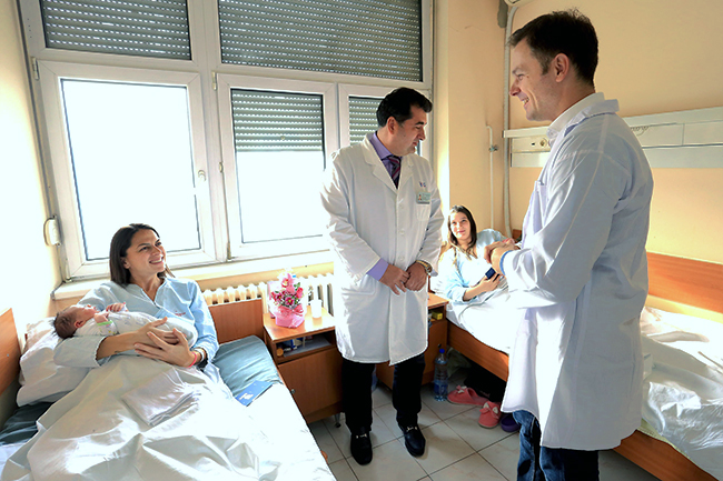 Мали је обишао две девојчице, Бојану и Анђелу, које су рођене у Клиници и гинекологији за акушерство у Вишеградској улици и два дечака близанце Виктора и Александра, који су рођени у ГАК Народни фронт.