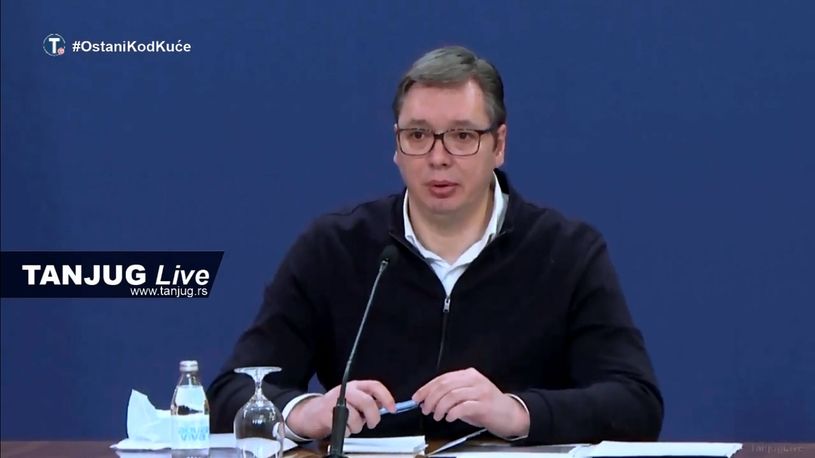 „Сутра у 11 сати из Русије стиже први Иљушин са опремом, осам лекара и стручњацима за дезинфекцију. Имао сам добар разговор и са Макроном. Он је рекао 'Александре, имате подршку Француске, и то тако кажи народу Србије'. Ја сам га замолио да нам доставе 50 кг сировине за хидроксинхлорокин, он је обећао да ће у наредних 48 сати да ми одговори. Желимо да кренемо у производњу лека хлорокин ", рекао је председник Србије.