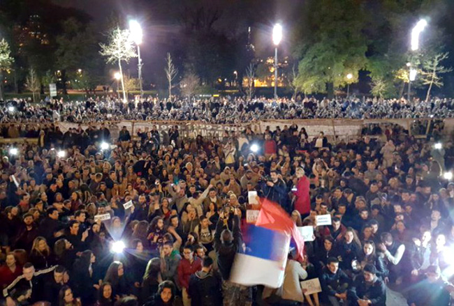 * Истицање политичког програма објашњено овако: „Ми, студенти и студенткиње, заједно са радницима, ђацима, сељацима, пензионерима и свим осталим незадовољним људима Србије који већ данима протестују на улици, овим путем желимо да истакнемо наше захтеве и позовемо све који се са њима слажу да заједно уђемо у борбу за њихово остварење"
