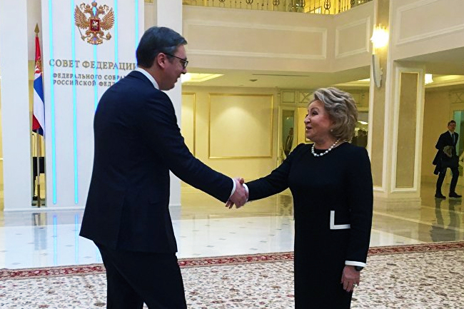 Матвијенко, блиска сарадница руског председника Владимира Путина и најутицајнија жена у Русији, боравила је у посети Београду крајем новембра. Том приликом, председница Горњег дома руског парламента обратила се посланицима Народне скупштине Србије, а разговарала је и са председником Вучићем.