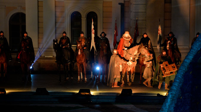 "До Немање смо били племе, од њега до данас државотворни народ. Зато држи мач, којим је правио и градио, затим чувао и штитио. До Немање смо били култура опонашања и превођења, од њега култура креације, хранитељства и писања, а то симболизује Хиландарска повеља", рекао је Вучић. И наставио: