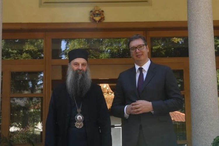 ПРЕДСЕДНИК Србије Александар Вучић састао се данас са Његовом светошћу патријархом српским Порфиријем.
