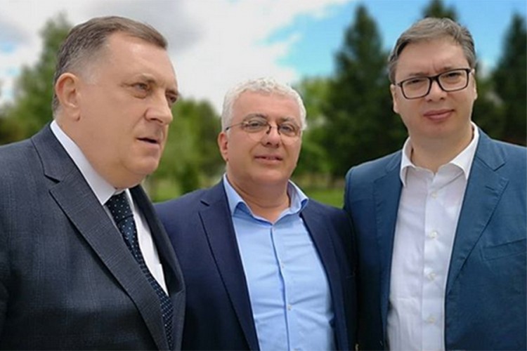 "Председник Србије Александар Вучић и председавајући Председништва БиХ Милорад Додик разговарали су данас у Нишу, након приказа способности ВС и МУП, поводом Дана побједе, са лидером Демократског фронта Андријом Мандићем о актуелној политичкој ситуацији у региону", стоји испод фотографије на инстаграм налогу "будућностсрбијеав".