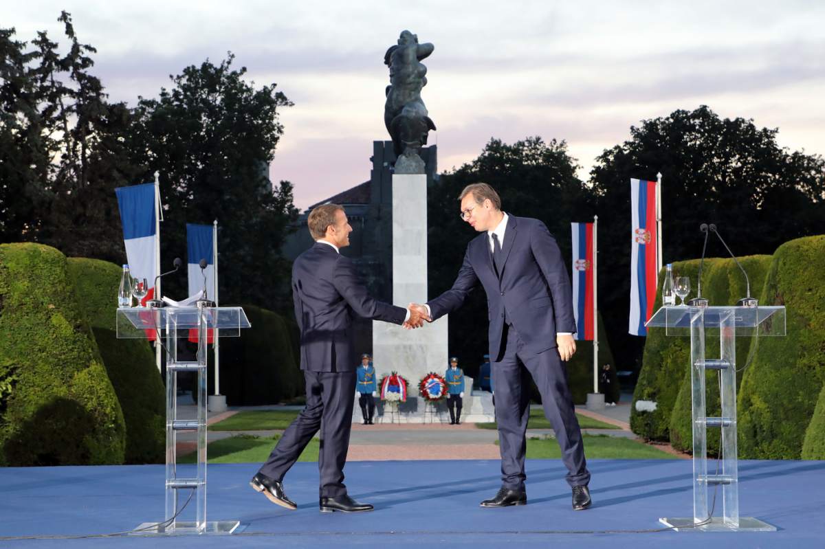 Вучић је на конференцији за новинаре с министарком одбране Француске Флоранс Парли рекао да Србија не учествује у готово оркестрираној кампањи против Макрона због неких одлука у ЕУ, односно одлуке да се не отворе преговори о чланству у ЕУ са Северном Македонијом и Албанијом.