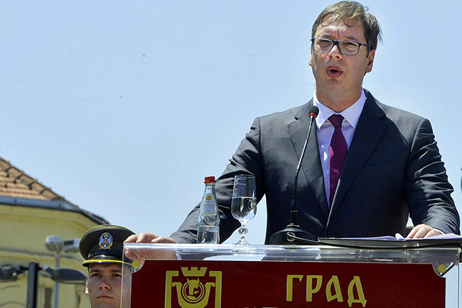 „Они вероватно полазе од себе, желе да буду слуге, један дан руске, а други дан западне. Ми нисмо слуге”, подвукао је Вучић.