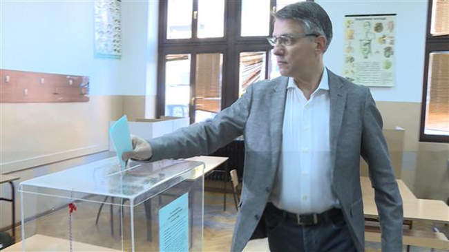 Он је гласао на бирачком месту у Основној школи „Димитрије Туцовић”, у пратњи супруге Миљане.